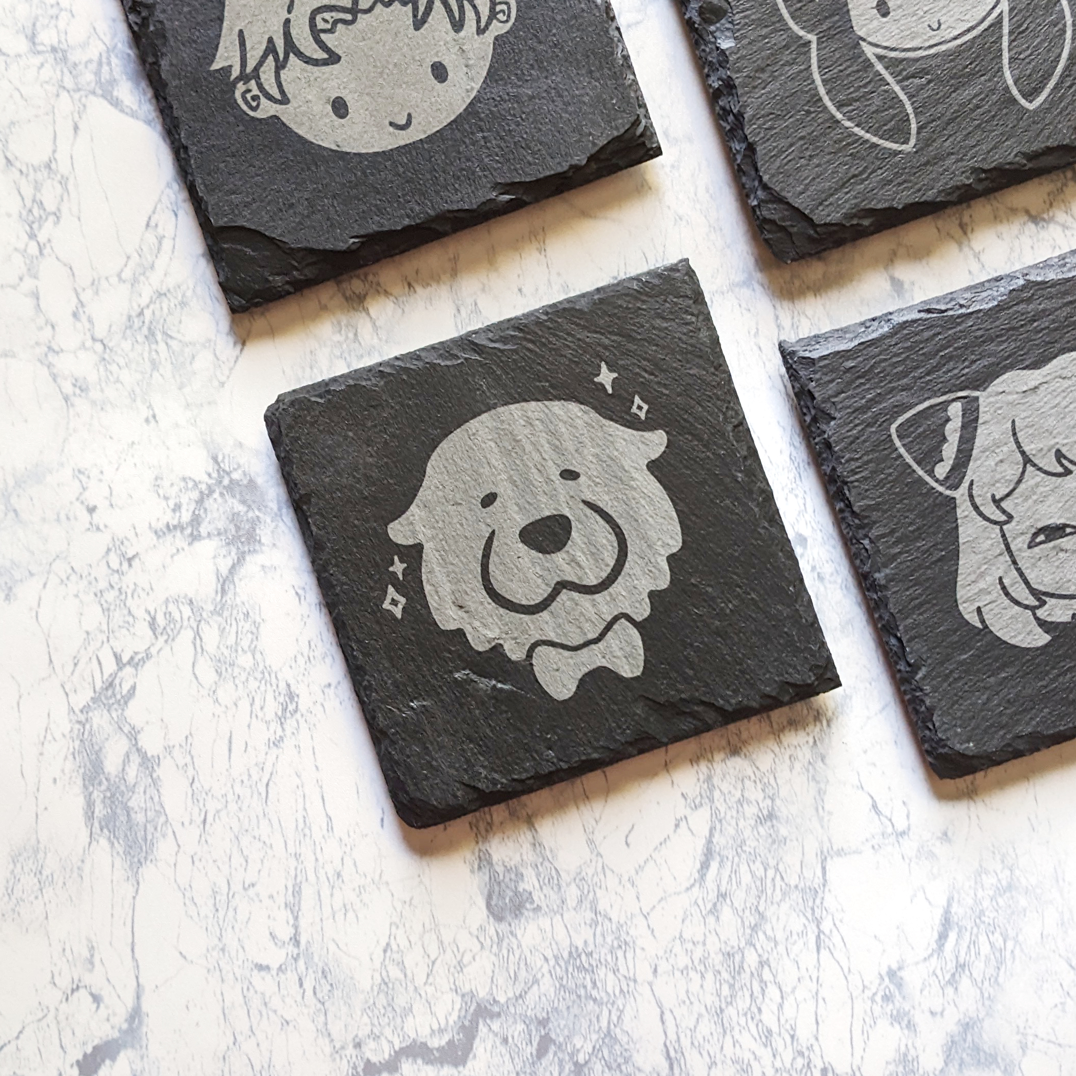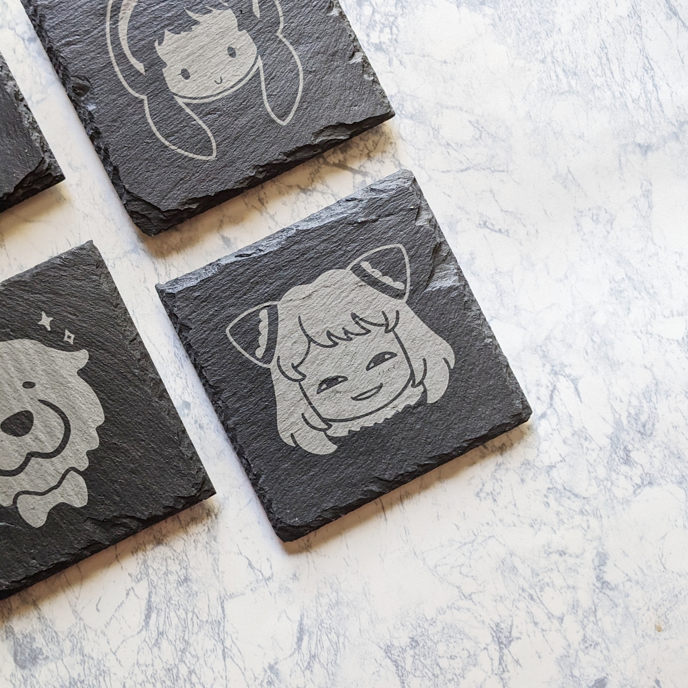 Due to the nature of slate, the thickness and edges of each coaster will vary.